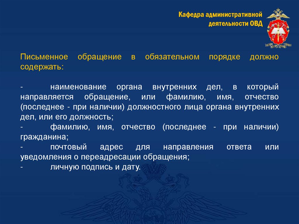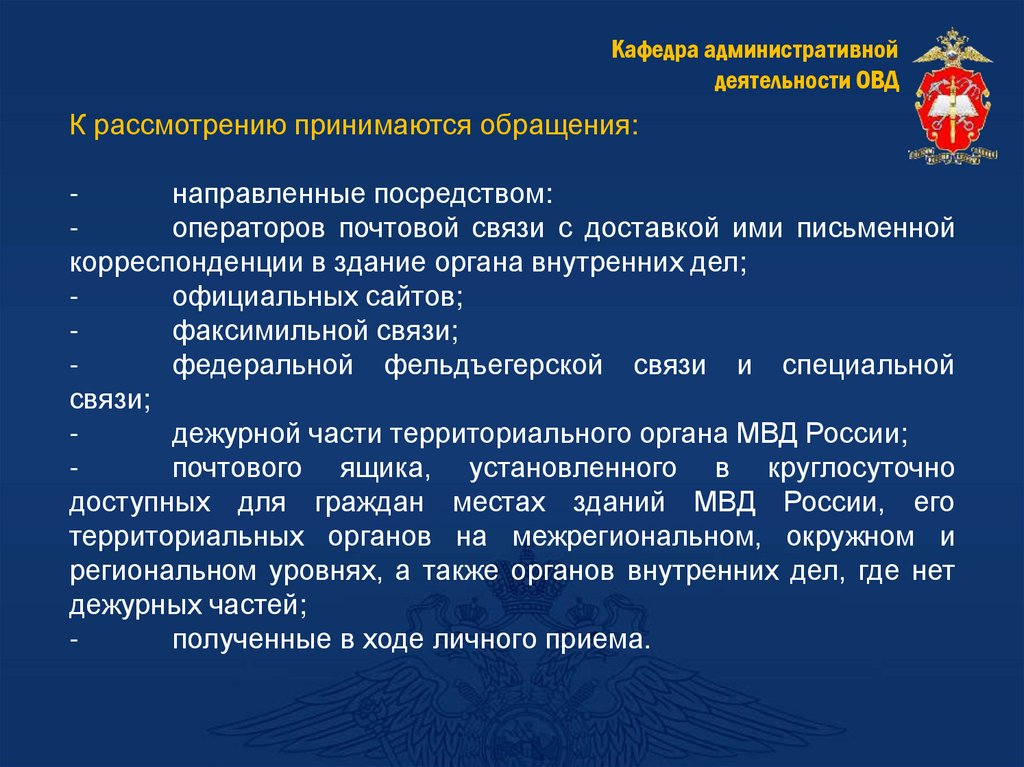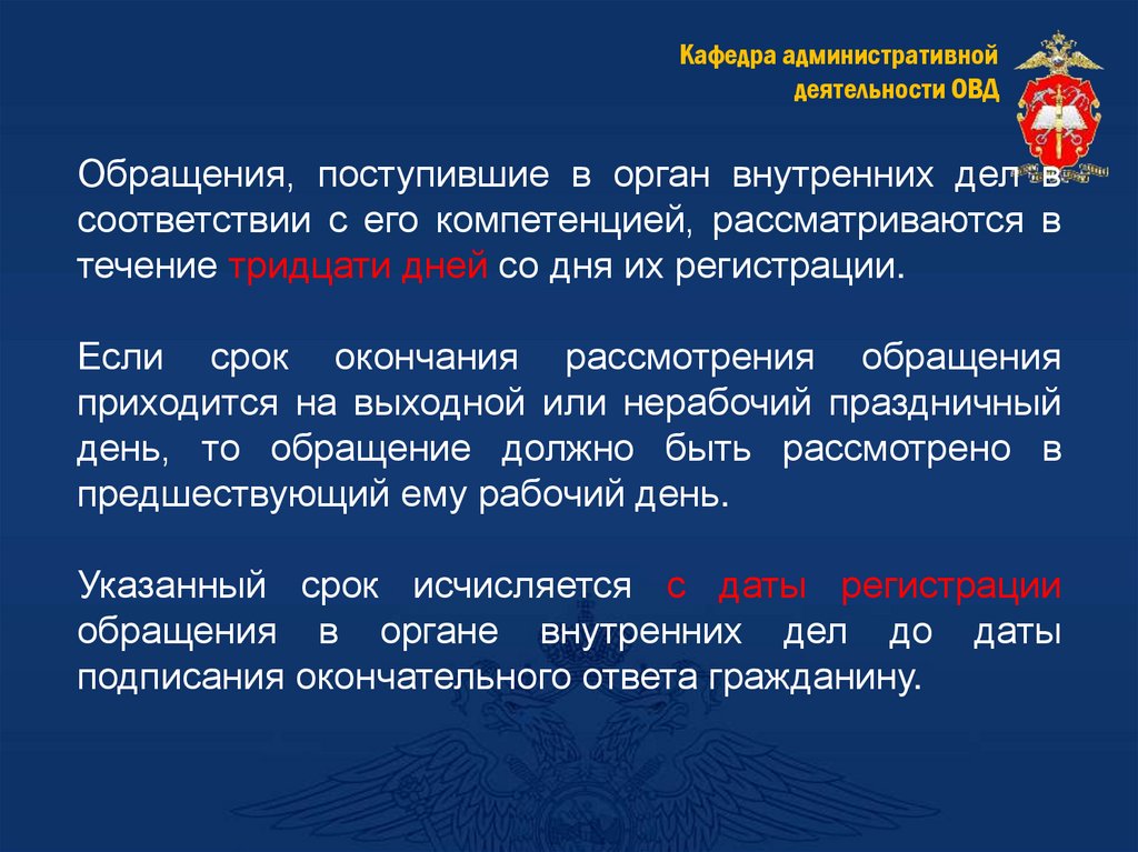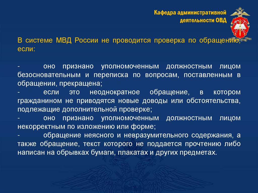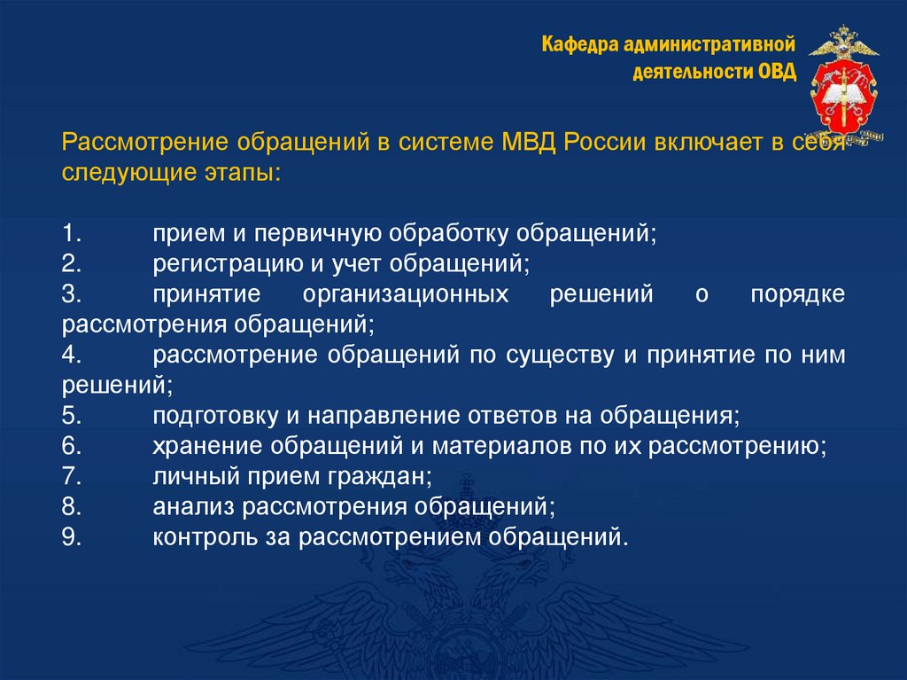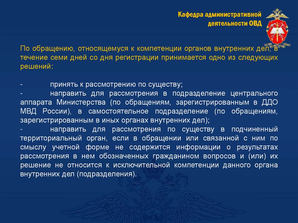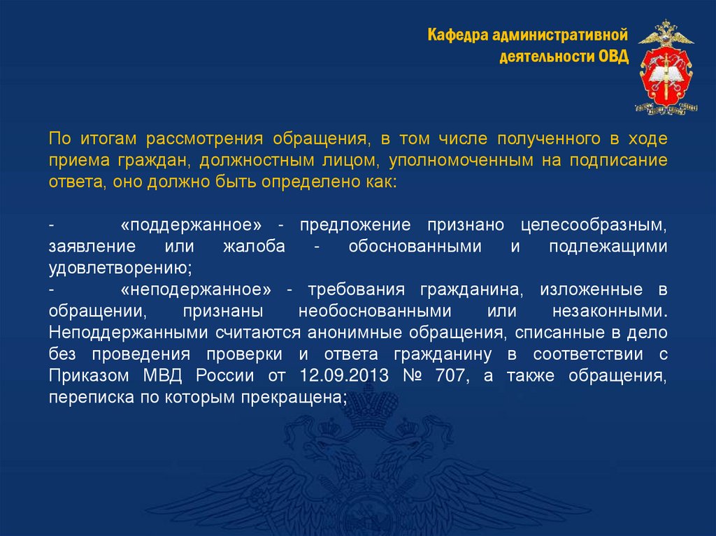 Приказом МВД России от 12.09.2013 № 707, а также обращения,