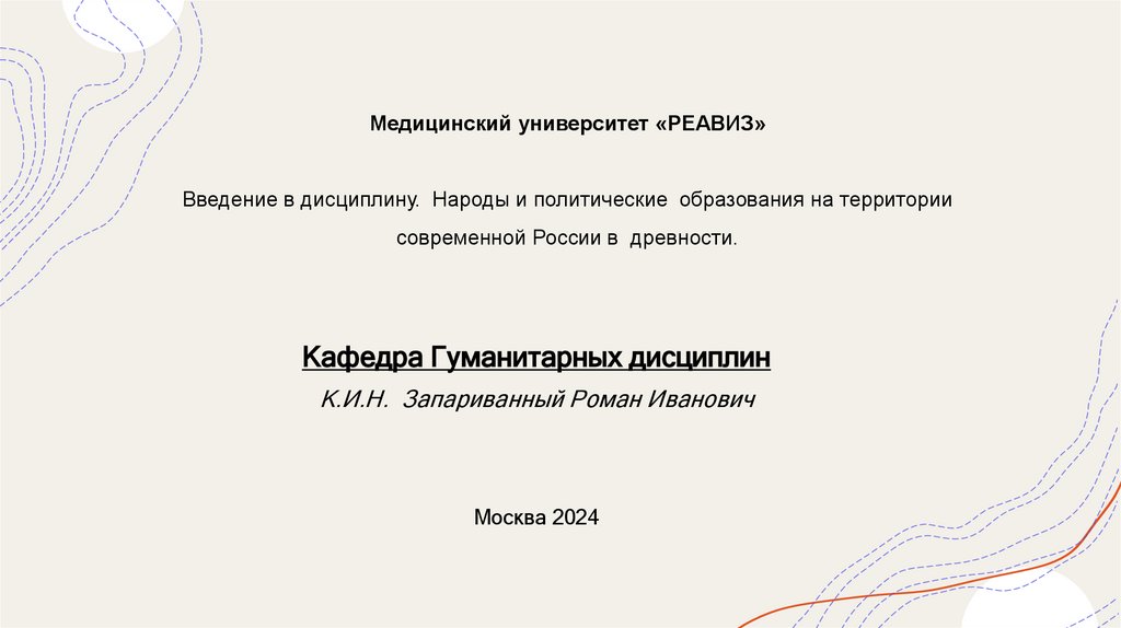 1. Медицинский университет «РЕАВИЗ» Введение в дисциплину. Народы и политические образования на территории современной России в