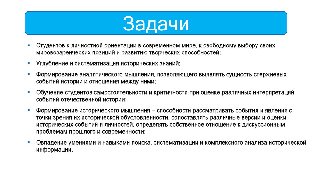Изучение истории решает задачи не только воспитания, но и просвещения формируют