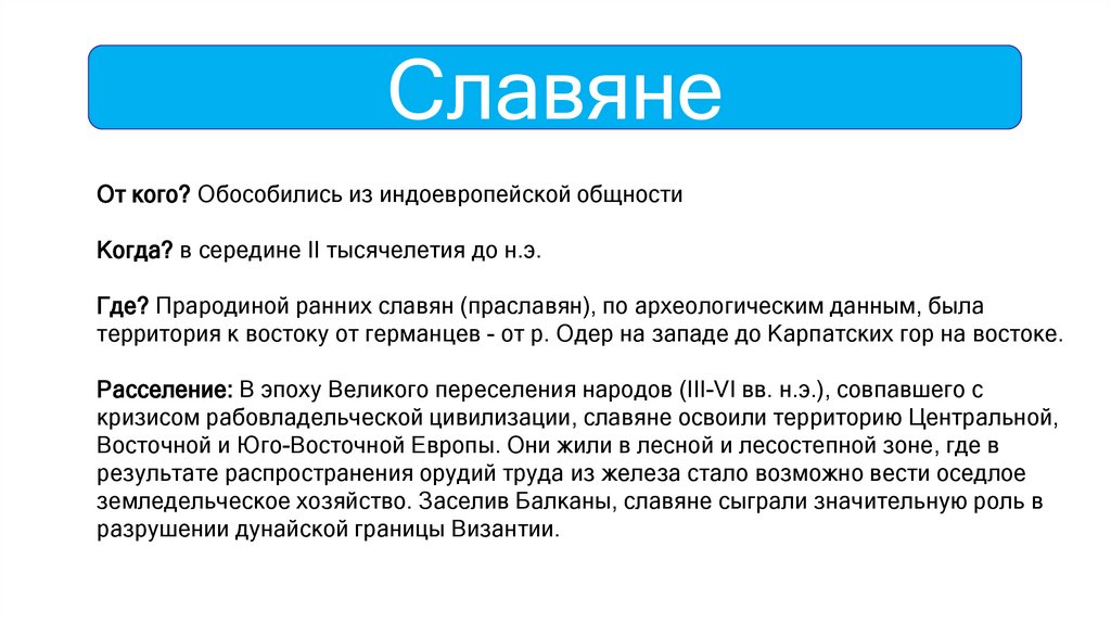 кризисом рабовладельческой цивилизации, славяне освоили территорию Центральной,