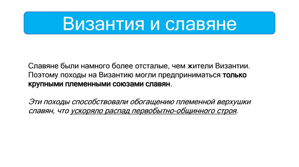 Византия и славянеСлавяне были намного более отсталые, чем жители Византии.