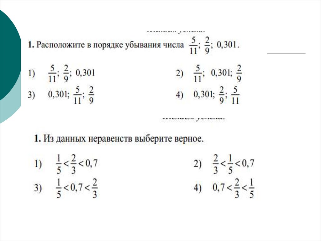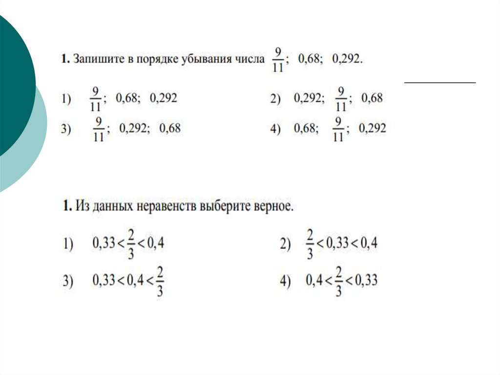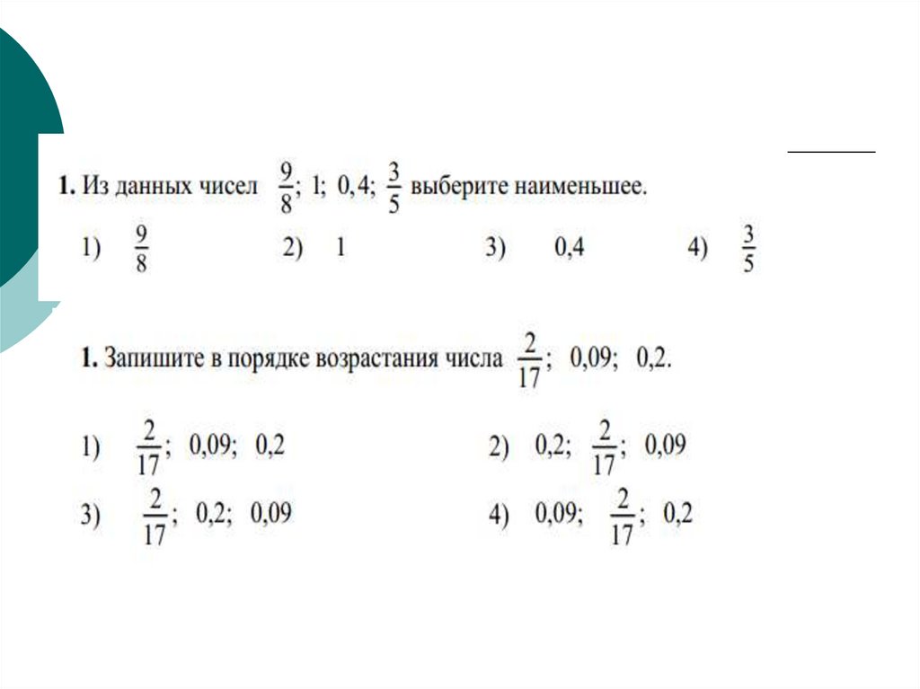 Сравнение рациональных чисел. Актуализация опорных знаний