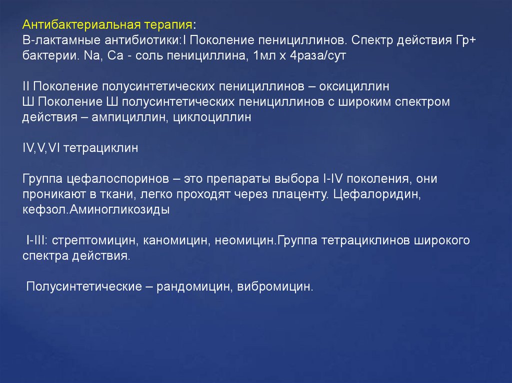 Этиотропное лечение.Основа лечения – назначение антибиотиков. Необходимо