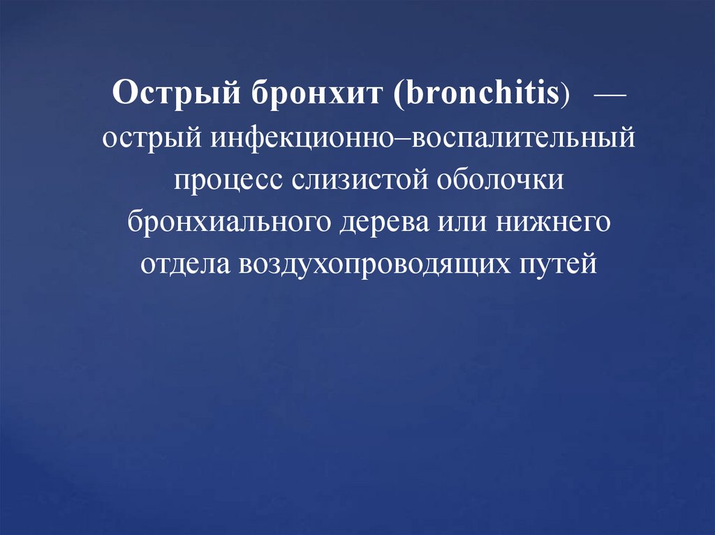 Острый бронхит (bronchitis) —острый инфекционно–воспалительный