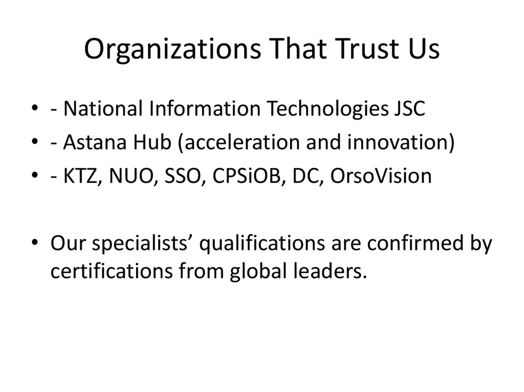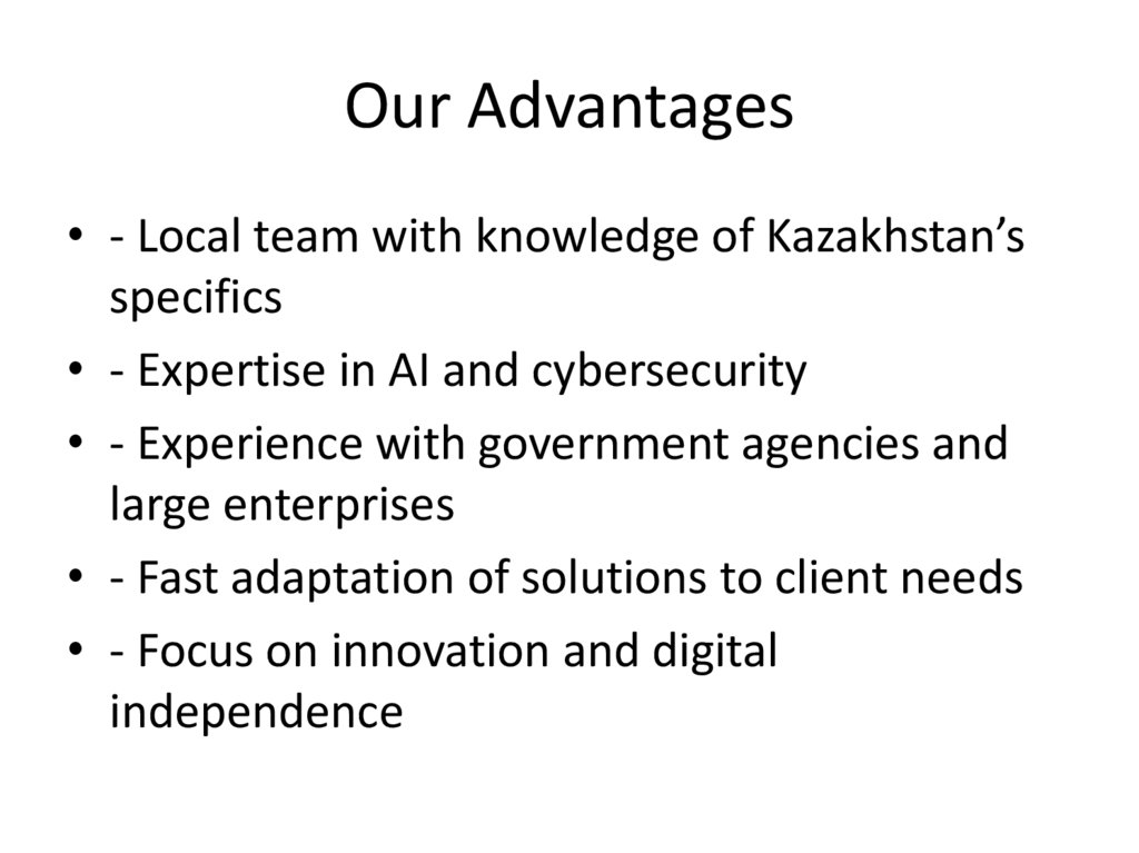 Our Advantages• - Local team with knowledge of Kazakhstan’s