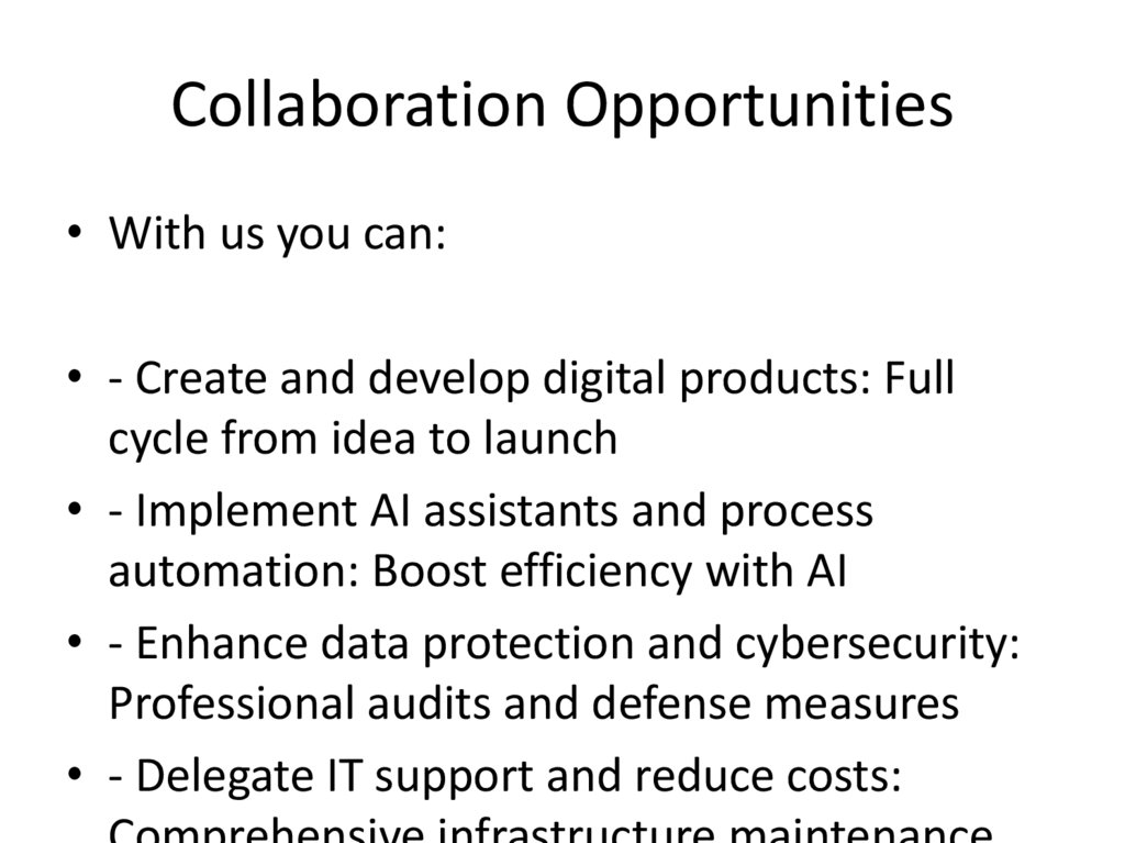 • - AI Solutions: Chatbots, RAG, NLP, business