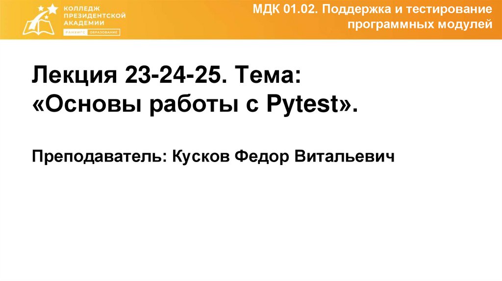 МДК 01.02. Поддержка и тестированиепрограммных модулей