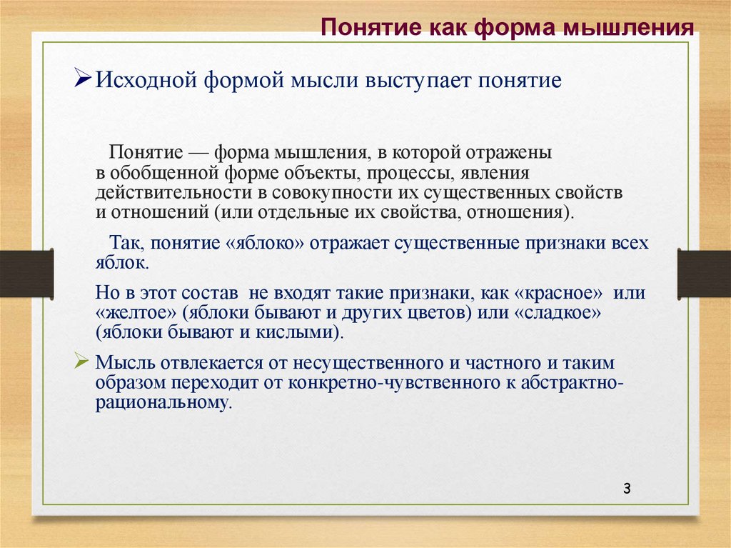 Понятие как форма мышленияИсходной формой мысли выступает понятие