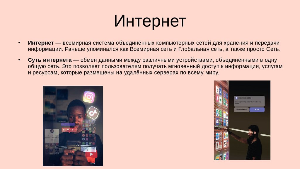 Суть интернета — обмен данными между различными устройствами, объединёнными в одну