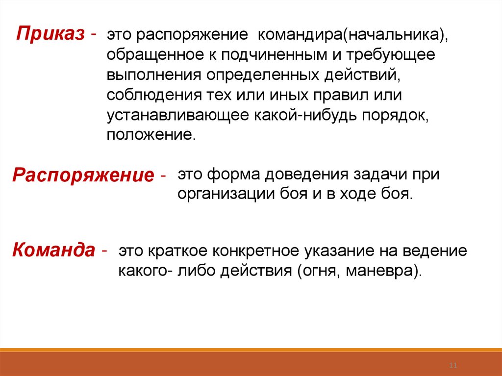 Приказ - это распоряжение командира(начальника),обращенное к подчиненным и требующее