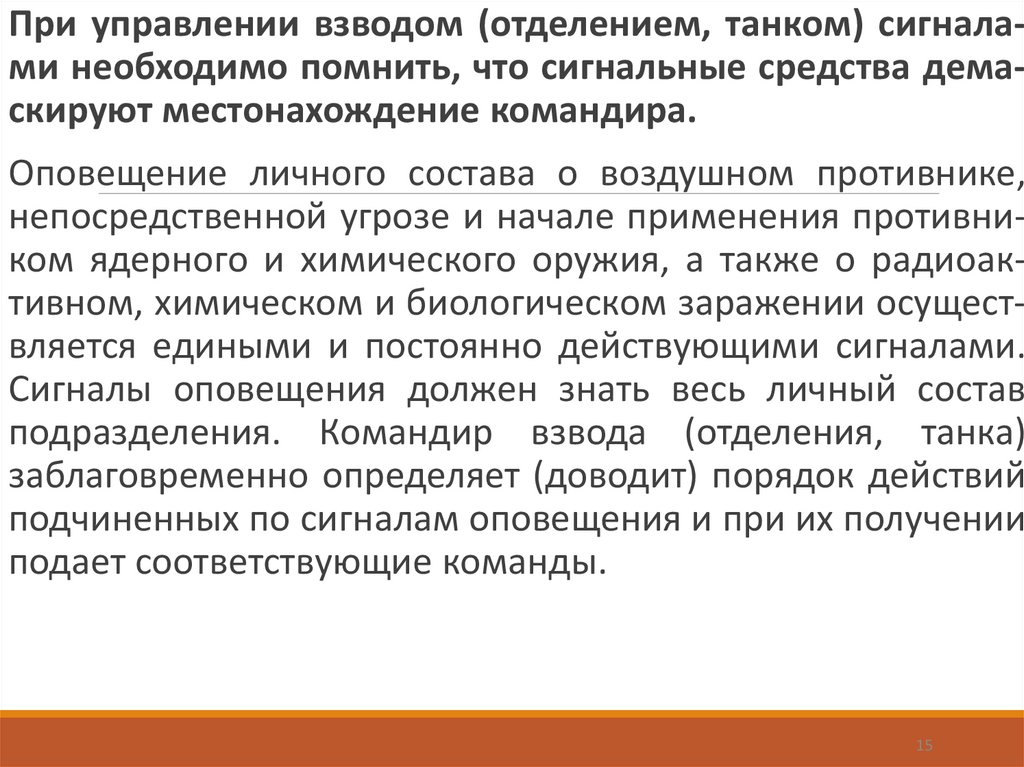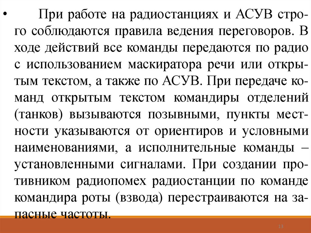 с использованием маскиратора речи или открытым текстом, а также по АСУВ. При передаче команд открытым текстом командиры отделений