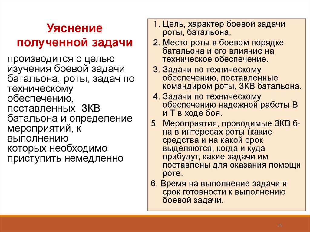 получении боевой задачи, выполнении ранее полученных задач, новых сведениях о противнике, а
