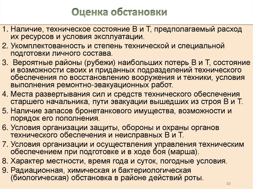 1. постоянный сбор данных об обстановке (особенно о положении и характере действий