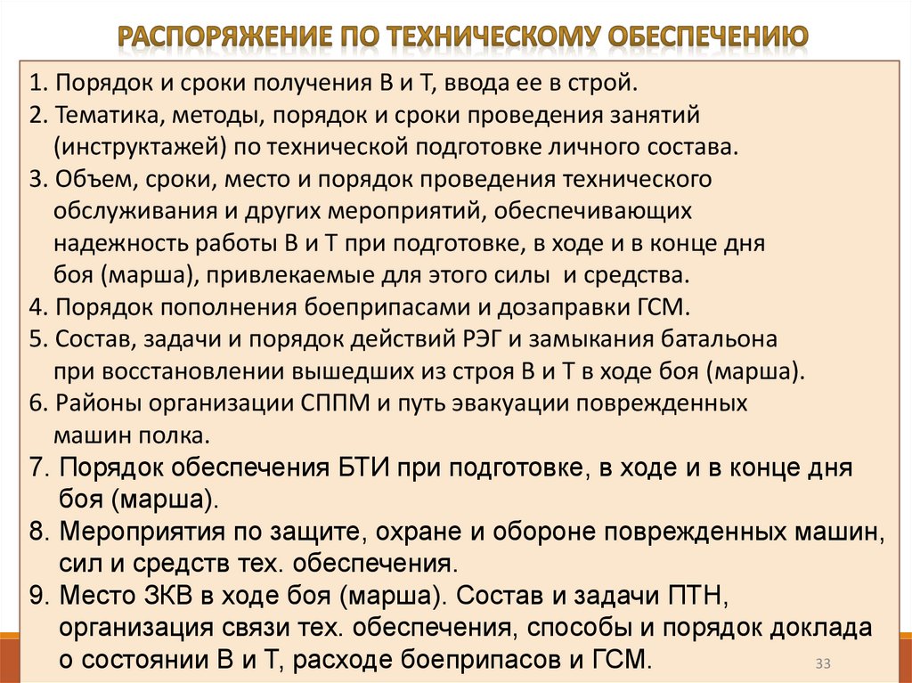 - своевременно организовывать техническое обслуживание вооружения и военной техники