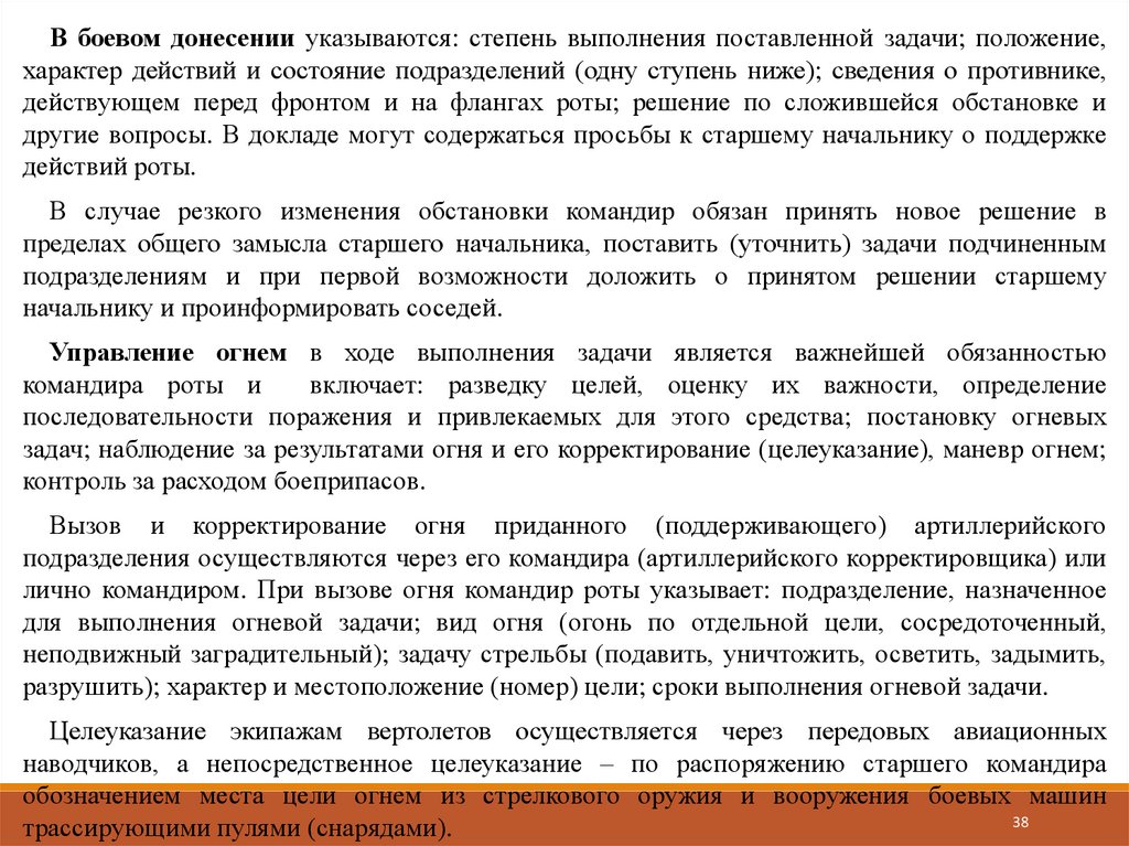 действующем перед фронтом и на флангах роты; решение по сложившейся обстановке и