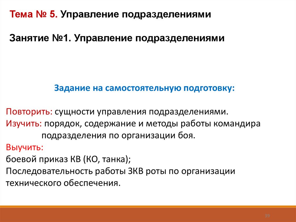 Тема № 5. Управление подразделениямиЗанятие №1. Управление подразделениями