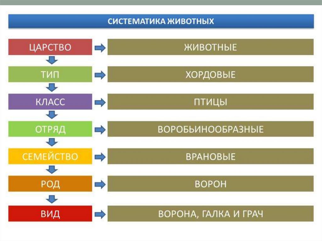 класс, отряд, род, вид.