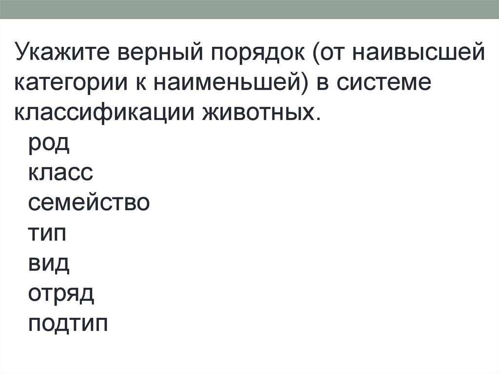 Укажите верный порядок (от наивысшейкатегории к наименьшей) в системе