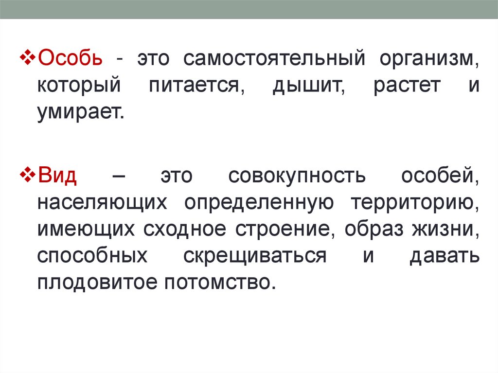 Особь - это самостоятельный организм,который питается, дышит, растет и