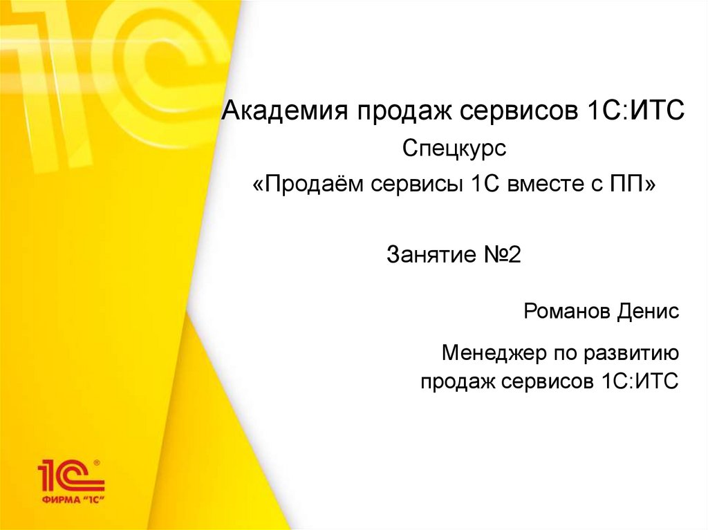Спецкурс «Продаём сервисы 1С вместе с ПП» Занятие №2