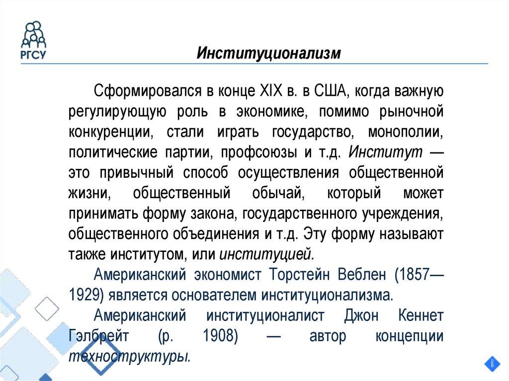 институтам (профсоюзам, судам, церкви и др.). В основу их теории