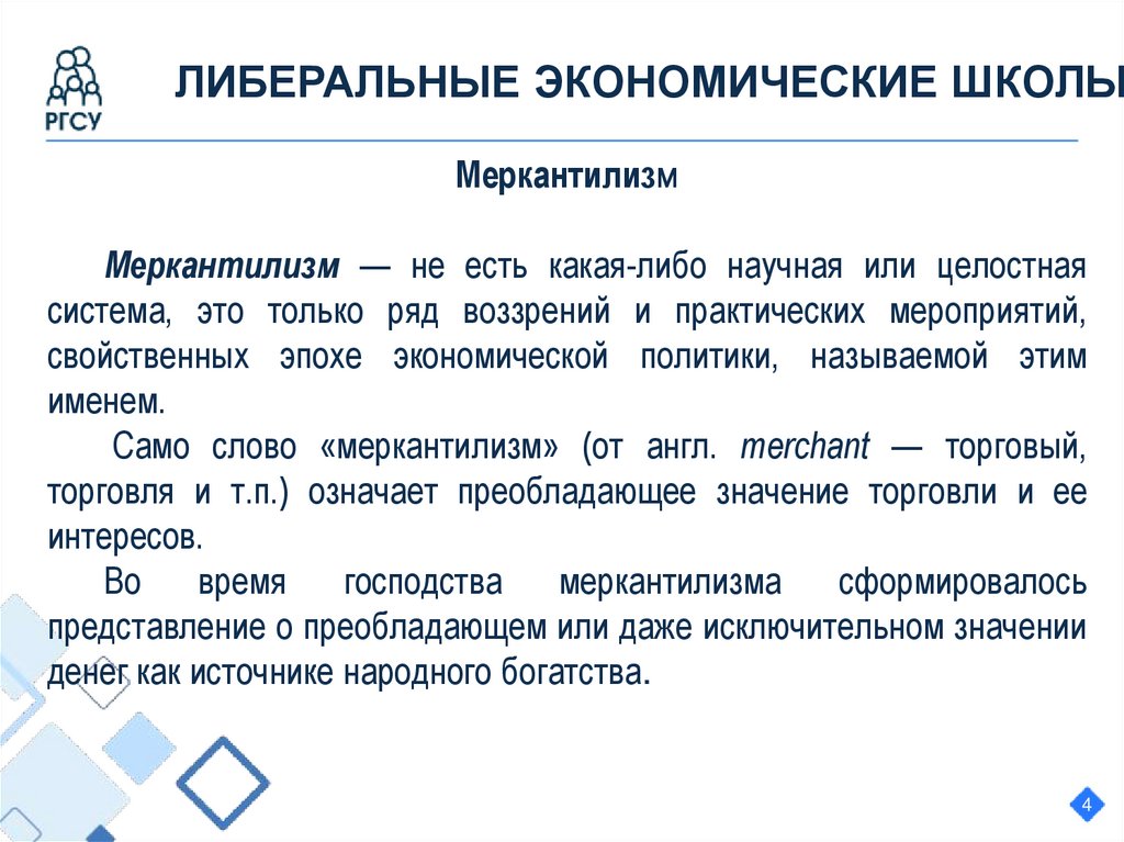 ЛИБЕРАЛЬНЫЕ ЭКОНОМИЧЕСКИЕ ШКОЛЫМеркантилизм