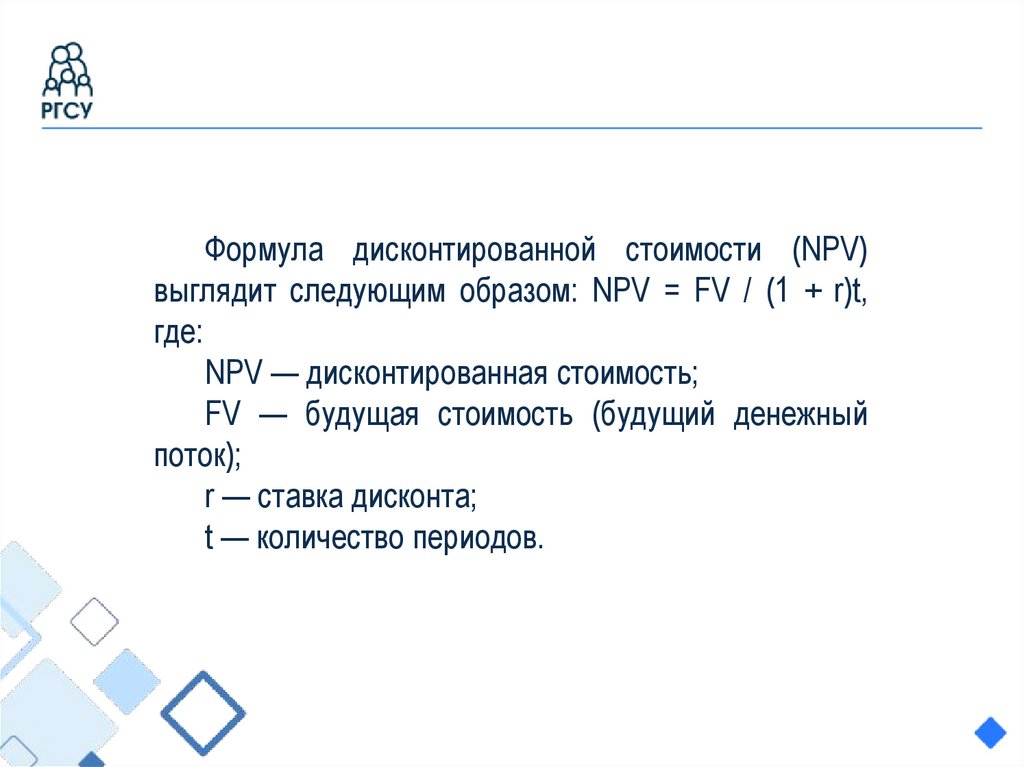 применяется дисконтирование по выбранной заранее ставке. Как вы