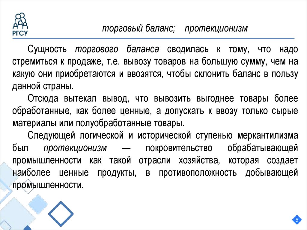торговый баланс; протекционизмСущность торгового баланса сводилась к тому, что надо