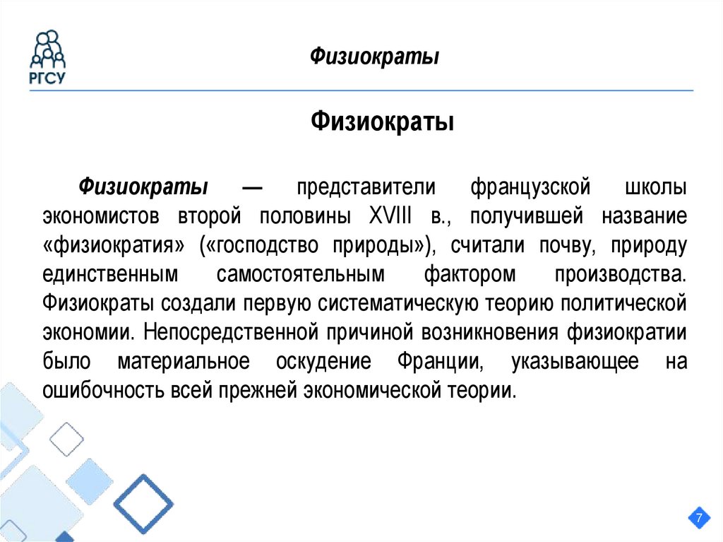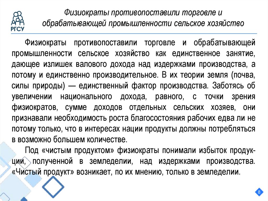 Физиократы противопоставили торговле иобрабатывающей промышленности сельское хозяйство