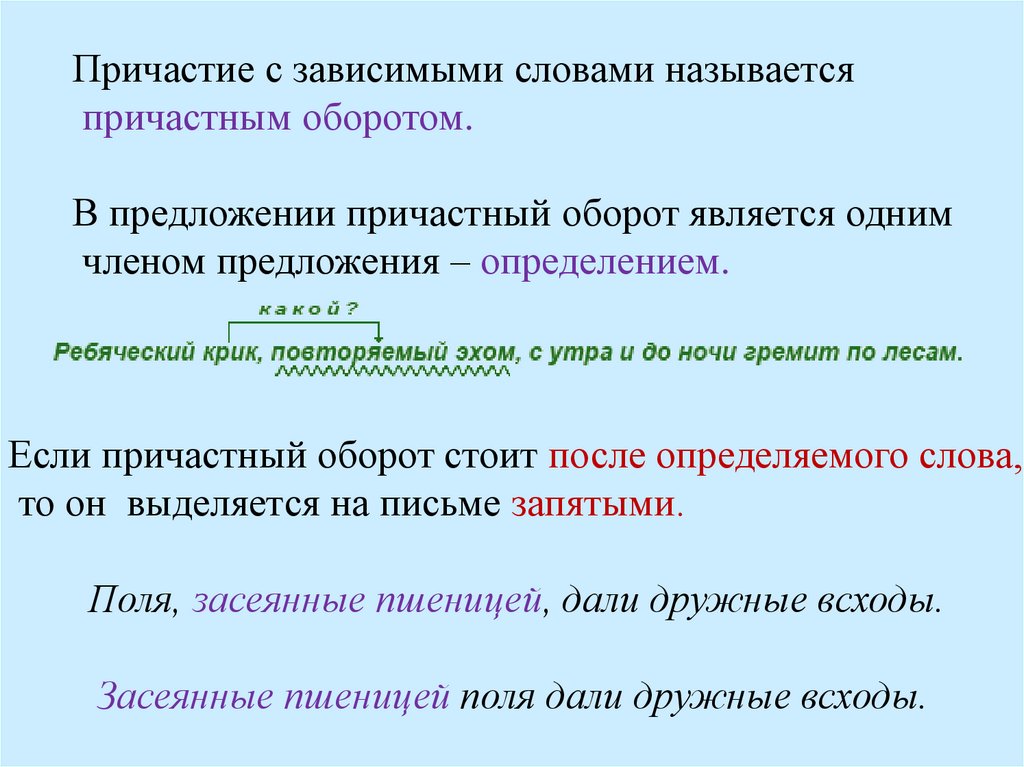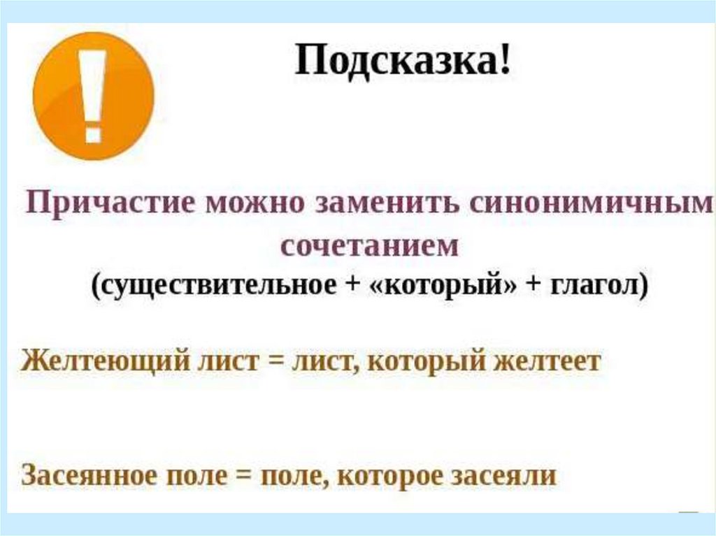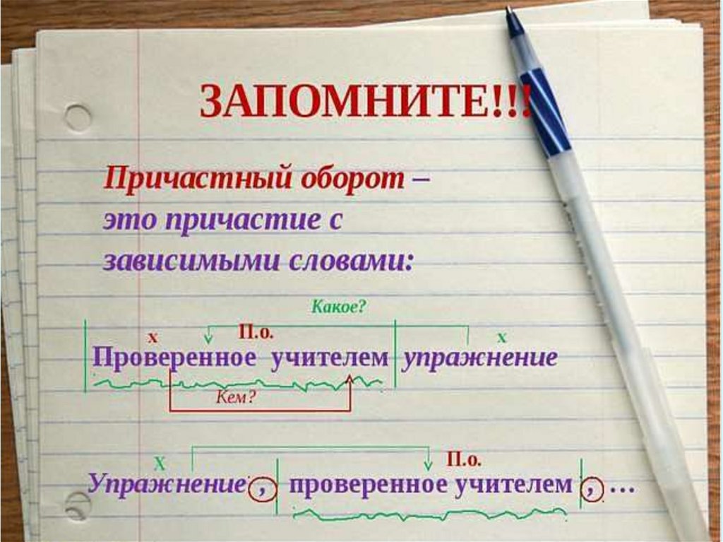 • находить причастный оборот,