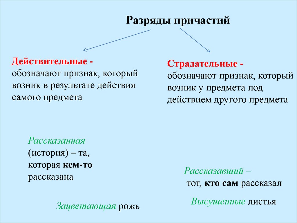Разряды причастийДействительные обозначают признак, который