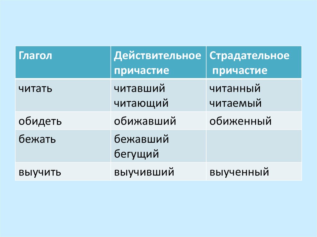 • Действит. - передающийся,читавший, шедший