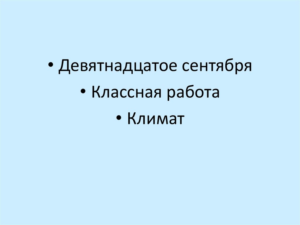 • Девятнадцатое сентября• Классная работа