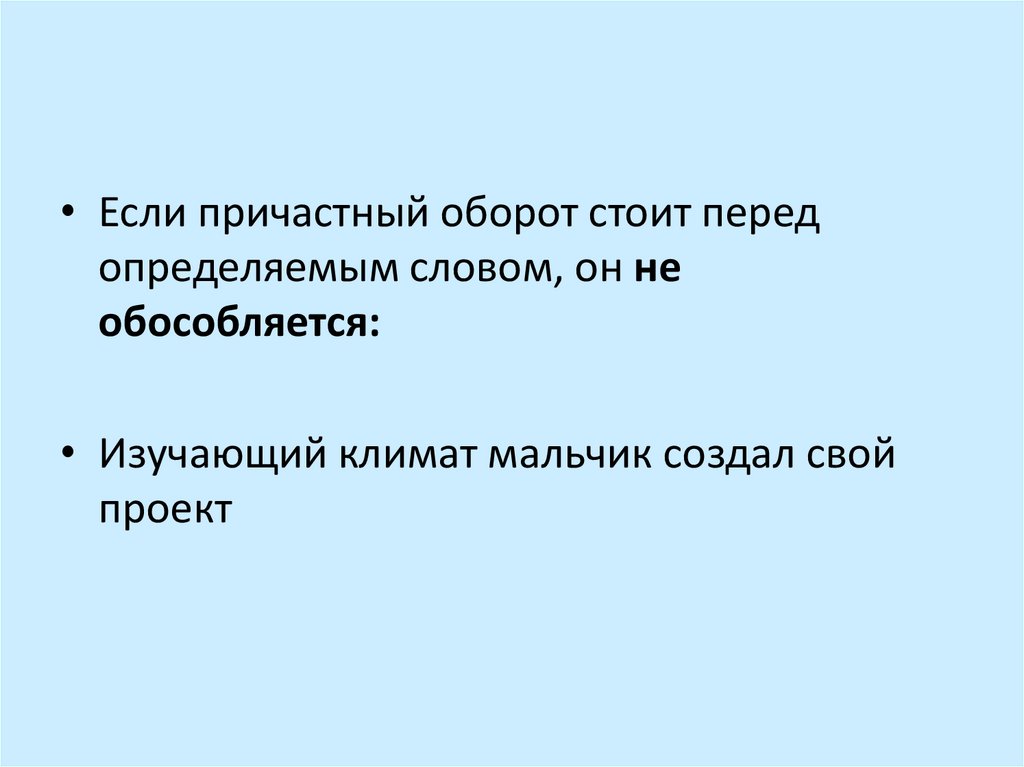 • Если причастный оборот стоит передопределяемым словом, он не
