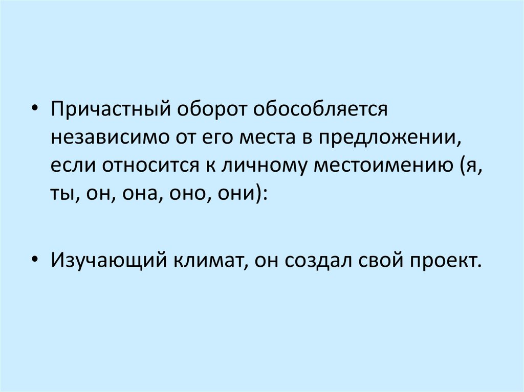 • Причастный оборот обособляетсянезависимо от его места в предложении,