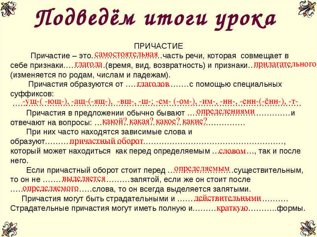 Причастие самостоятельнаячасть