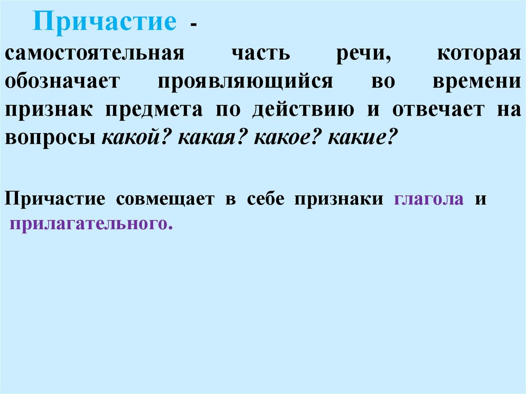 Причастие как часть речи