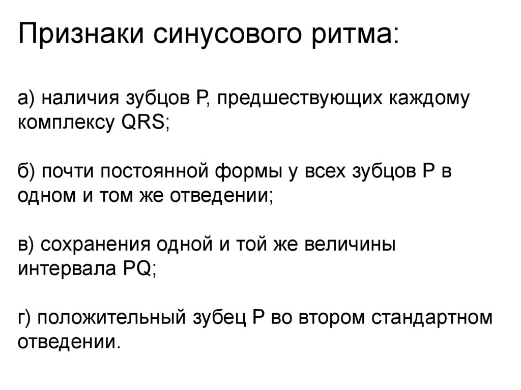 Признаки синусового ритма:а) наличия зубцов Р, предшествующих каждому