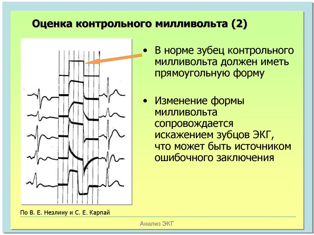 Оценка контрольного милливольта (2)• В норме зубец контрольного