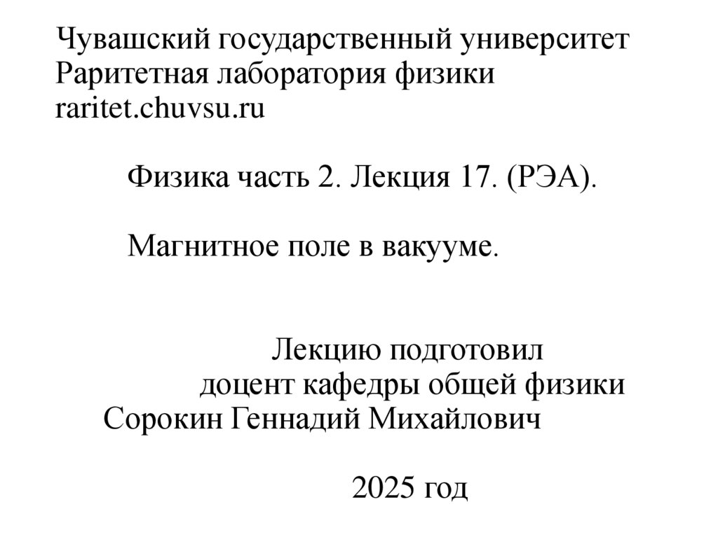 Физика часть 2. Лекция 17. (РЭА). Магнитное поле в вакууме