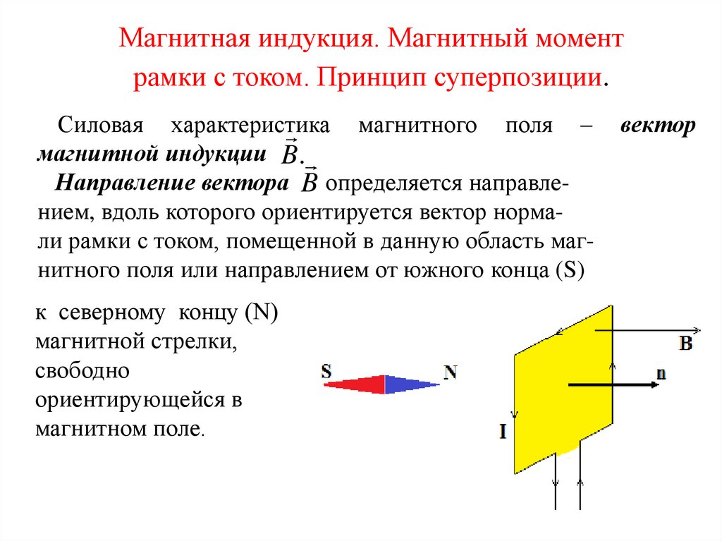 Магнитная индукция. Магнитный моментрамки с током. Принцип суперпозиции.