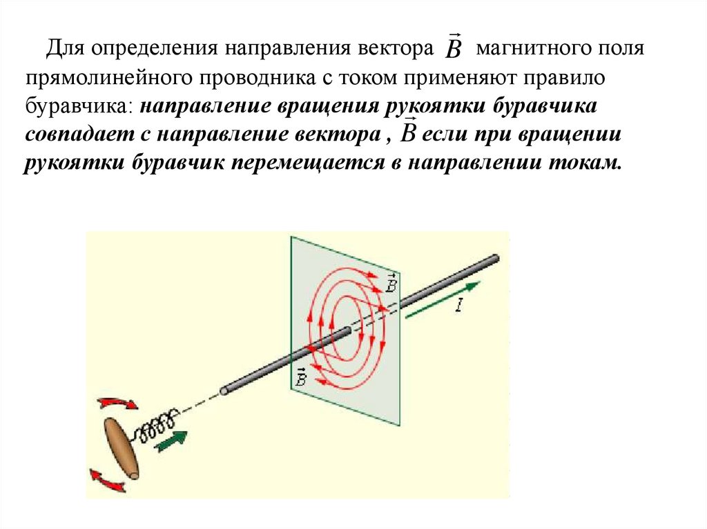 Для определения направления вектора B магнитного поляпрямолинейного проводника с током применяют правило