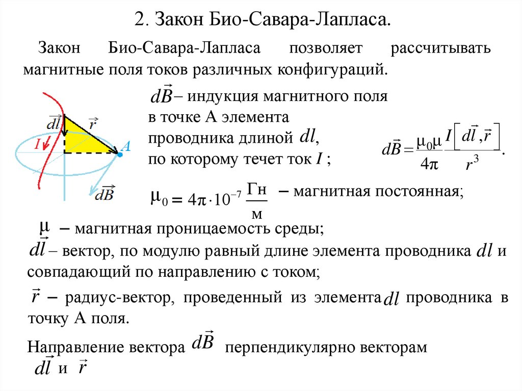 Применение закона Био-Савара Лапласа к расчетумагнитных полей. Индукция магнитного поля