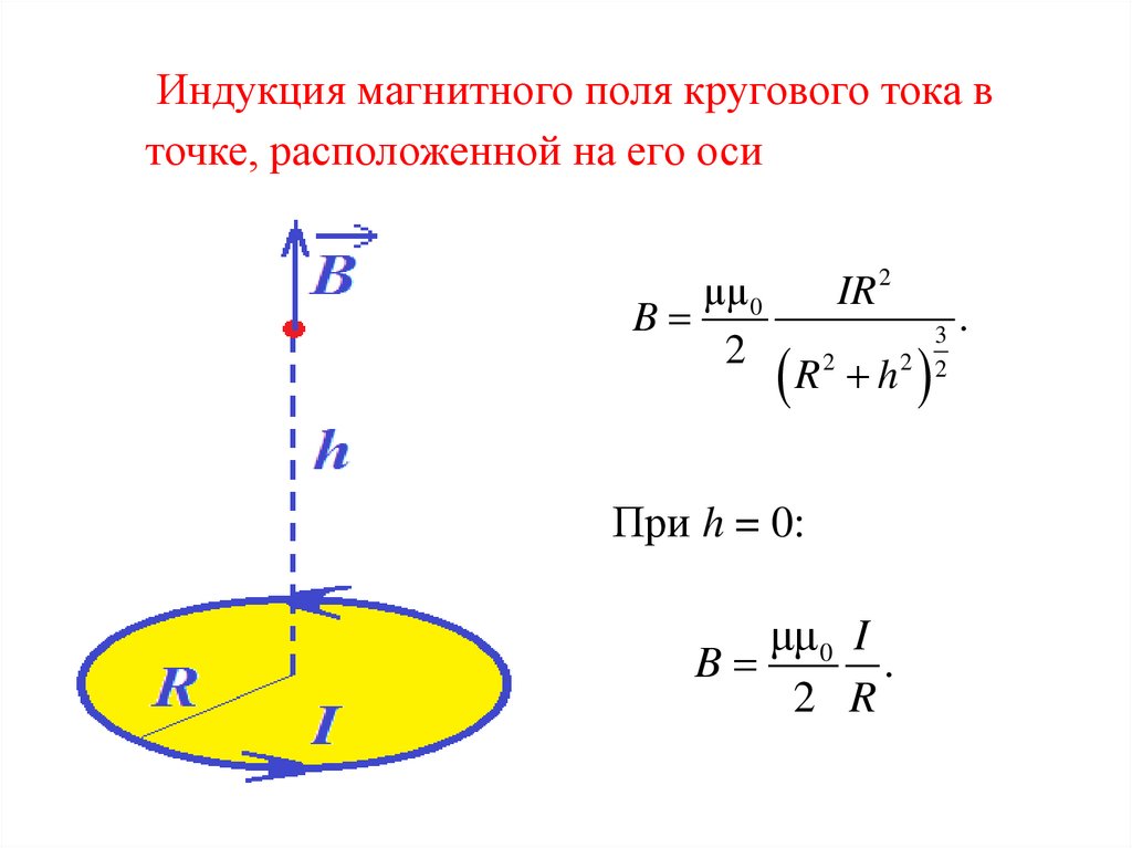 Индукция магнитного поля кругового тока вточке, расположенной на его оси
