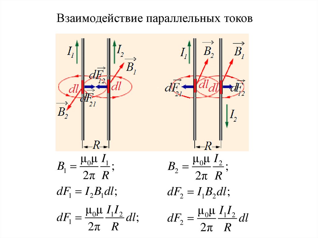 отталкиваются друг от друга. Если токи имеют одинаковое