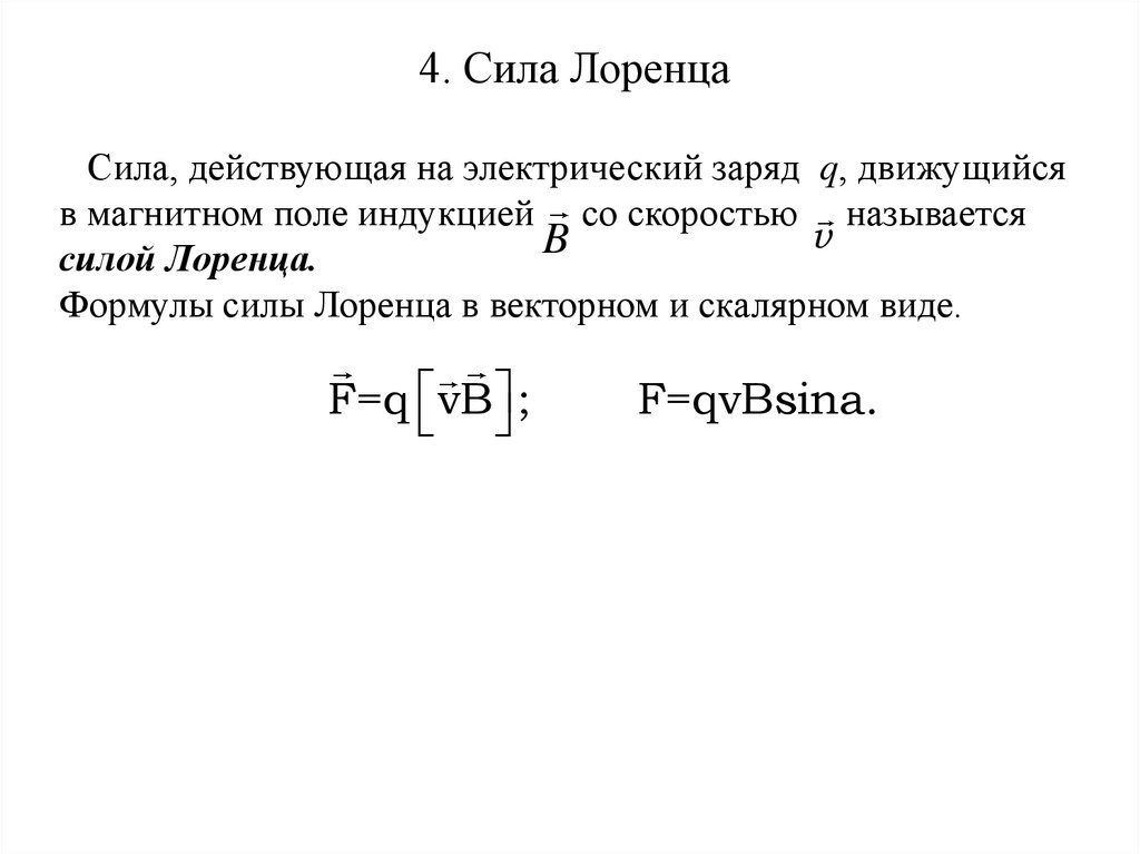 4. Сила ЛоренцаСила, действующая на электрический заряд q, движущийся