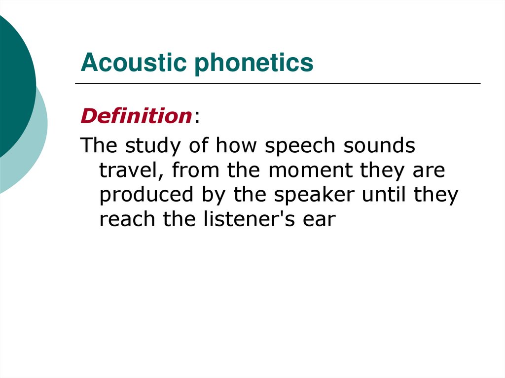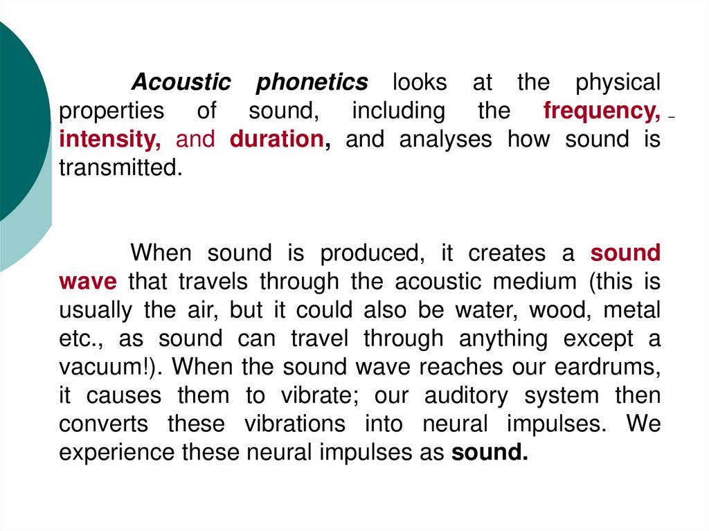 Acoustic phonetics looks at the physicalproperties of sound, including the frequency,