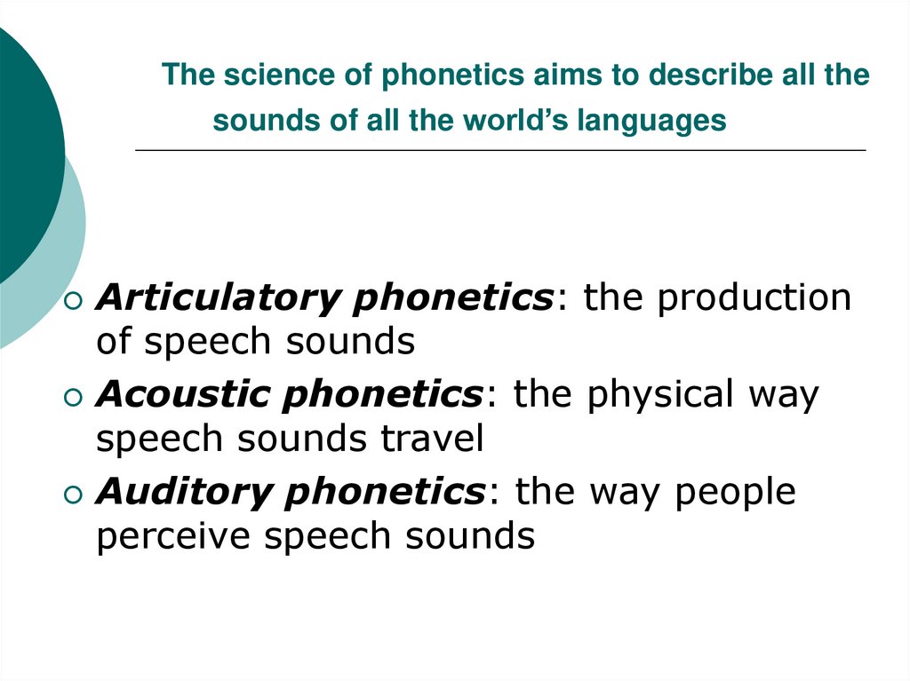 The science of phonetics aims to describe all thesounds of all the world’s languages