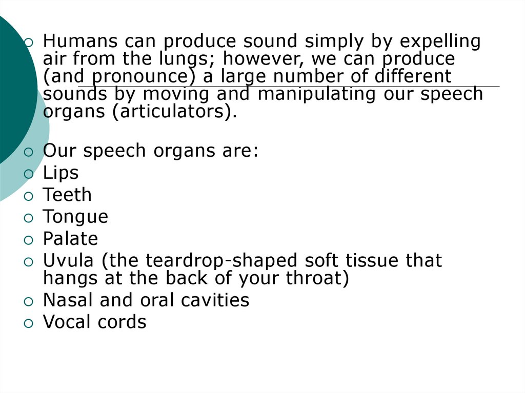 Humans can produce sound simply by expellingair from the lungs; however, we can produce