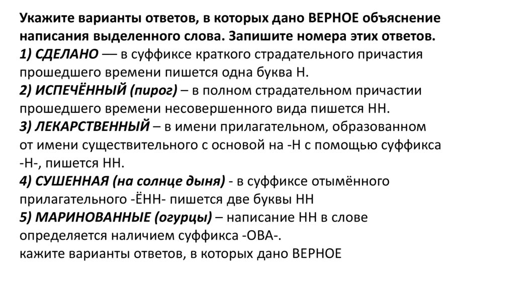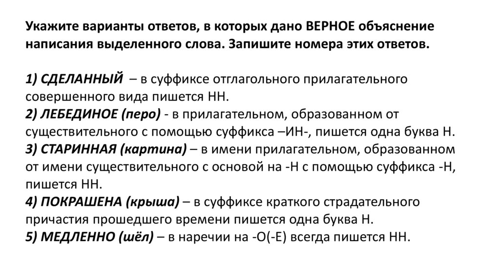 1) СДЕЛАНО –– в суффиксе краткого страдательного причастия